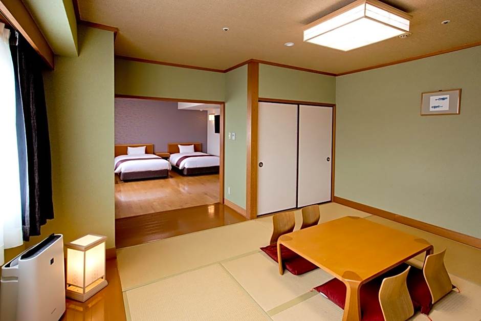 The spacious family room provides air conditioning, tatami, as well as a private bathroom featuring a bath and a shower. The unit offers 2 beds and 4 futons.